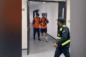 在中超“青岛德比”结束后,最后时刻受伤的邝兆镭步履蹒跚。