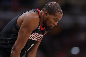 “火箭的问题不在于杜兰特,他仍打出了最佳阵容级别的赛季。而且他30+得分的场次已经是上赛季与他交易来的两名球员的两倍。